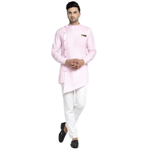 Bontestitch Cotton Blend Regular Fit Knee Length Kurta Pajama Set for Men (Pink, Size: XXL)