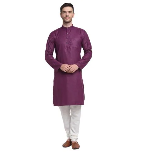 Bontestitch Cotton Blend Regular Fit Knee Length Purple Kurta Pyjama Set for Men (Size: XL)