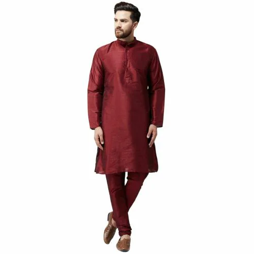 Bontestitch Men's Dupion Silk Maroon Kurta Pajama Set (Size: M)