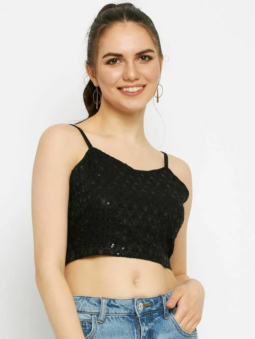 Brinns Black Embellished Shoulder Straps Crop Top