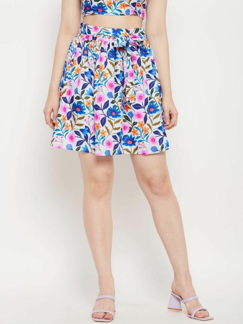 Brinns Floral Printed Pleated Tie-Up Detail Flared Skirt