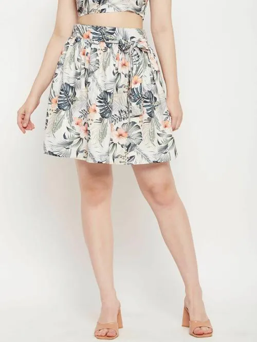 Brinns Floral Printed Pleated Tie-Up Detail Flared Skirt