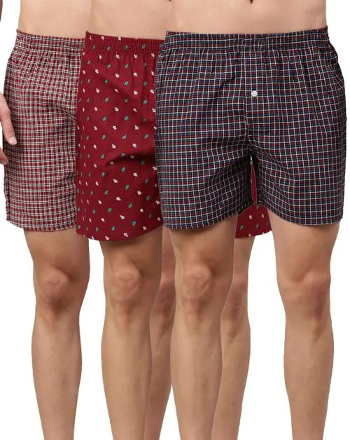 BROON Men's Multicolor Checkered Pure Cotton Pack of 3 Boxer Shorts