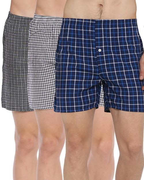 BROON Men's Multicolor Checkered Pure Cotton Pack of 3 Boxer Shorts