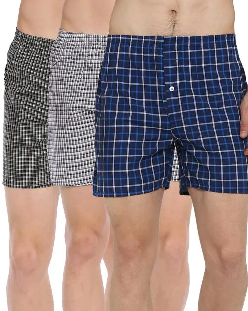 BROON Men's Multicolor Checkered Pure Cotton Pack of 3 Boxer Shorts