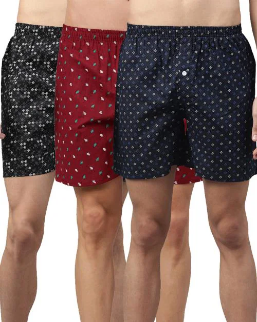 BROON Men's Multicolor Printed Pure Cotton Pack of 3 Boxer Shorts