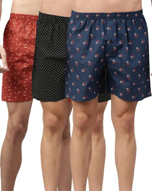 BROON Men's Multicolor Printed Pure Cotton Pack of 3 Boxer Shorts