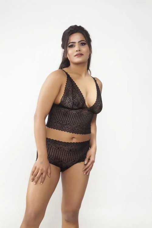Bruchi Club Black Self Design Lace Lingerie Set 30 | Lingerie Set | Black Lingerie |Lingerie for Women | Cotton Bra Panty | Innerwear