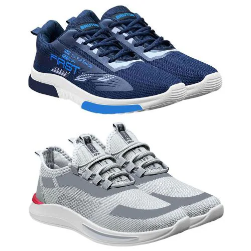 BRUTON Combo Pack of 2 Sports Shoes, Running Shoes For Men (Grey, Blue)