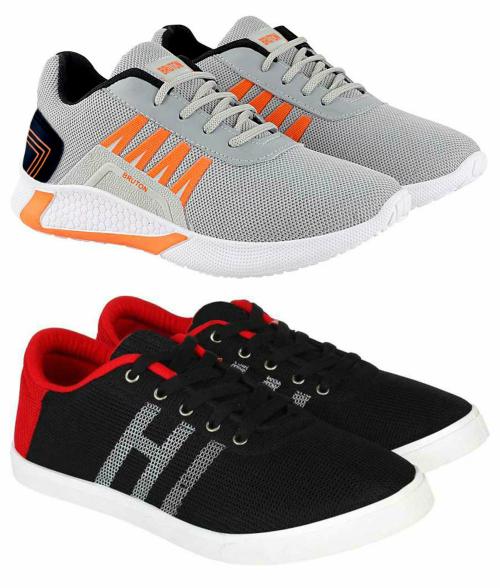 Bruton Combo Pack of 2 Sports Shoes, Running Shoes For Men (Grey, Red)
