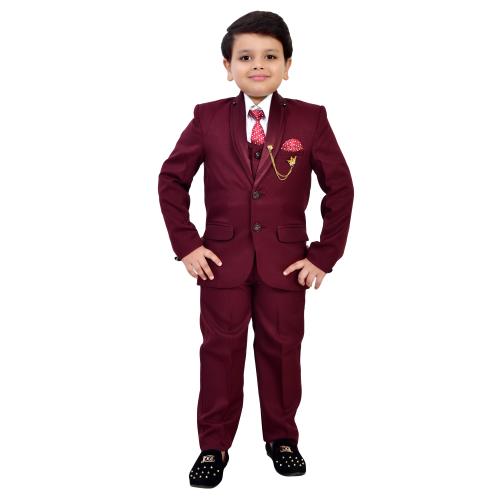 BT Dezines Kids 5-Piece Coat Pant Suit Set For Boys (4-5 years, Maroon)