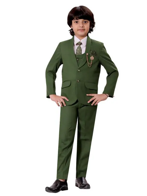 BT Dezines Kids 5-Piece Coat Pant Suit Set For Boys (7-8 years, Green)