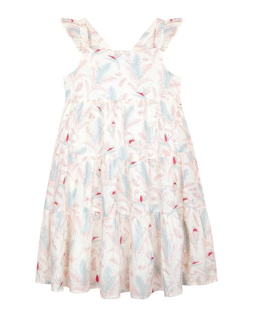 Budding Bees Girls All Over Printed A-Line Dress-Off White