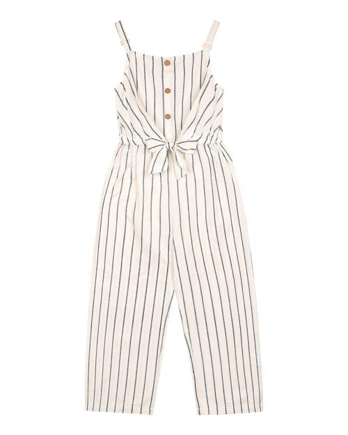 Budding Bees Girls Striped Sleeveless Full Jumpsuit-Off White