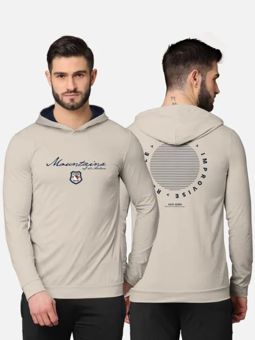 BULLMER Men Beige Cotton Blend Printed Single Sweatshirts