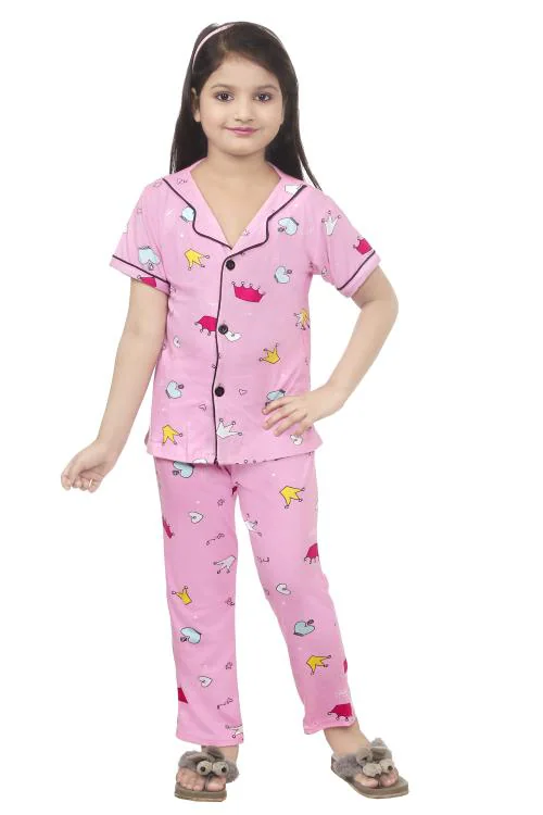 Burbn Girls Printed Cotton Nightsuit set