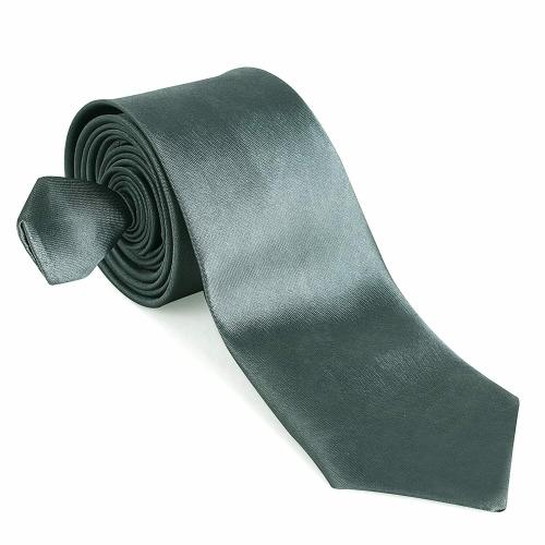 Bureaucrat Men's Formal Silk Satin Slim Solid Plain Necktie (Dark Grey)