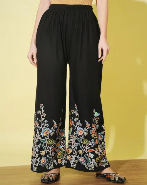 BuyNewTrend Black Floral Bird Print Rayon Women Palazzo Pant