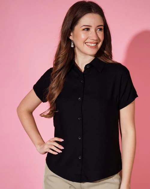 BuyNewTrend Solid White Rayon Half Sleeve Women Formal Shirt | shirt | shirts | shirt for women | shirt | shirts | shirt for women