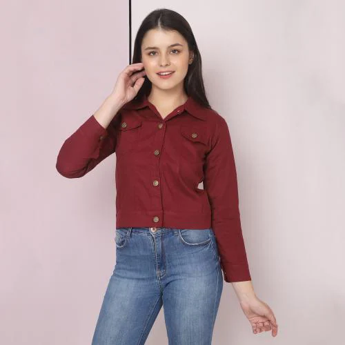 BuyNewTrend Women Maroon Twill Causal Jacket