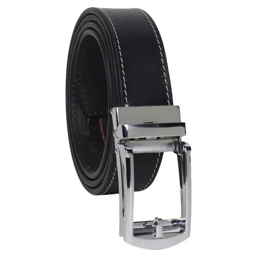Caddim Men's Auto-Lock Original Genuine Leather Belt|100% Leather Belt No Holes 241 BLACK-SILVER