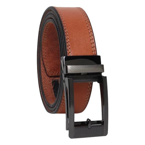 Caddim Men's Auto-Lock Original Genuine Leather Belt|100% Leather Belt No Holes 243 TAN-METAL BLACK