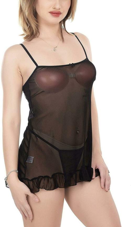 CALENDULA Women Black Solid Net Babydoll l Night dress l Night gown l Nighty for women