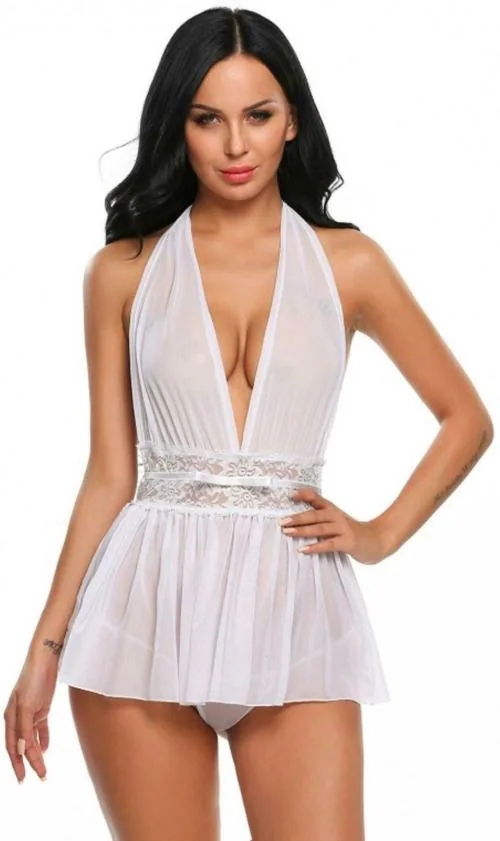 CALENDULA Women White Solid Net Babydoll l Night dress l Night gown l Nighty for women