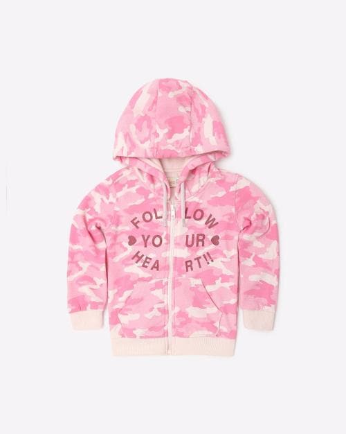 Camouflage Print Zip-Front Hoodie