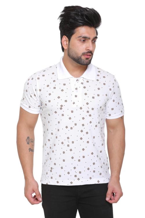 CARACAS White Men Printed Cotton Blend Polo T-shirt