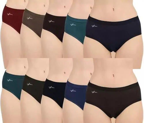 Cavenders Multicolor Solid Cotton Blend Pack of 10 Womens Hipster Panties