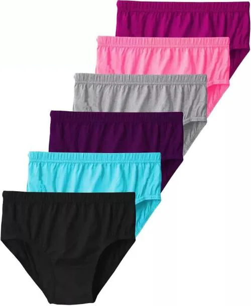 Cavenders Multicolor Solid Cotton Blend Pack of 6 Womens Hipster Panties