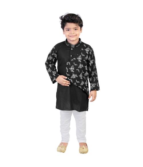 CELEBRITY CLUBBoysBlackCottonPrintedSingleBlack White Kurta Pyjama