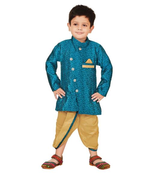 CELEBRITY CLUBBoysBlueDupionPrintedSinglePatti Sherwani