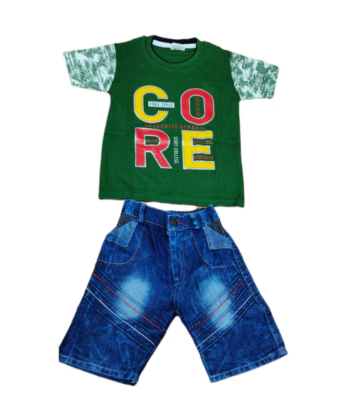 CELEBRITY CLUBBoysGreenPrintedHosierySingleMadeeha T-shirt & Pant