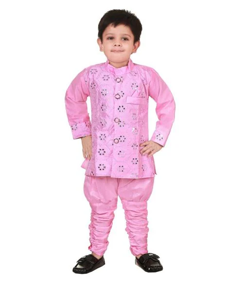 CELEBRITY CLUBBoysPinkDupionSolidSingleMirror Sherwani
