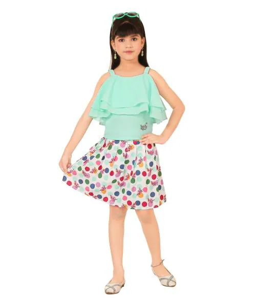 CELEBRITY CLUBGirlsGreenSolidPoly CrepeSingleApple Skirt Top