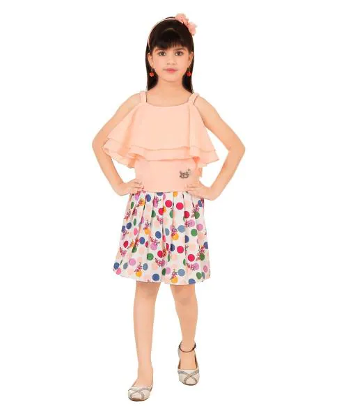 CELEBRITY CLUBGirlsPeachSolidPoly CrepeSingleApple Skirt Top