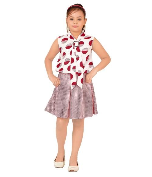 CELEBRITY CLUBGirlsRedPrintedPoly CrepeSingleCircle Tie Dress
