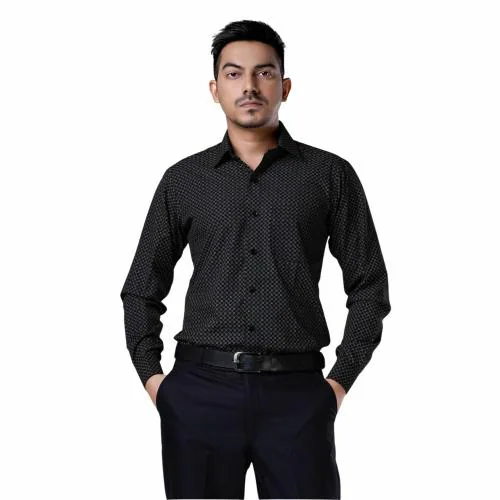 Charcoal Fashion Men's Regular Fit Printed Black Formal Shirt