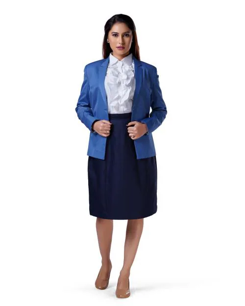 Charcoal Fashion Women's Solid Blue Regular Fit Formal Blazer