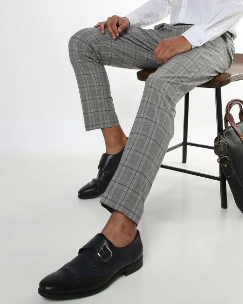 Checked Slim Fit Cropped Jeans