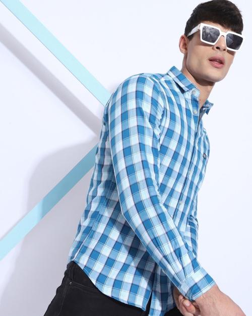 Men Checked Slim Fit Shirt with Patch Pocket