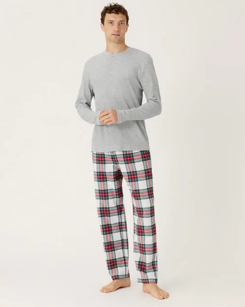 - "Relax in comfort and style with these cotton-rich pyjamas. Regular fit. Two-piece set comprises a long-sleeved top and full-length bottoms. Button fastening on the top and a drawstring waist with a mock fly on the bottoms. Handy side pockets. Matching items available. We only ever use responsibly sourced cotton for our clothes. "