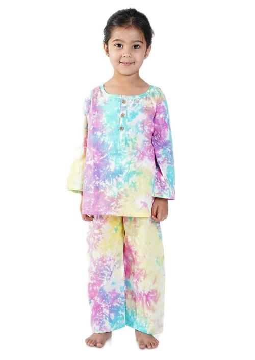 Chheent Tye And Dye Printed Cotton T Shirt And Pant Night Suit Set For Baby Boys And Girls (1-2 Years)