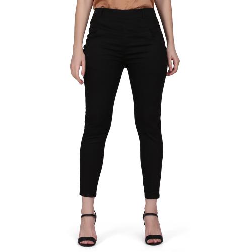 Chiku Cherry solid cotton lycra Black color women/girls jegging