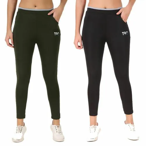 Chiku Cherry solid women multicolor lycra blend Trackpants pack of 2 size Large