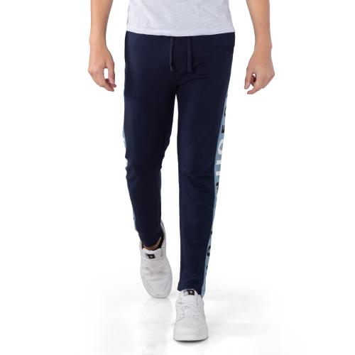 Chromozome Men Navy Solid Cotton Blend Track Pants