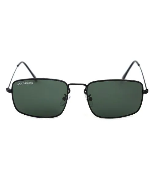 Classic Square Sunglasses for Men and Women, Unisex Polarized 100% UV Protected Sunglasses, Goggles, Medium Size, Black Frame with Green Lens by Micelo Martin, Gifts for Men, Women, Husband, Birthday
