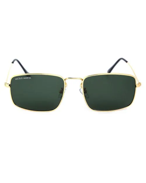 Classic Square Sunglasses for Men and Women, Unisex Polarized 100% UV Protected Sunglasses, Goggles, Medium Size, Gold Frame with Green Lens by Micelo Martin, Gifts for Men, Women, Husband, Birthday